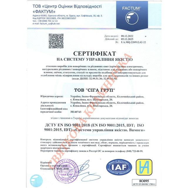 Siga Group — топовий український виробник штучних ялинок, сосен та новорічного декору, відомий не лише в Україні, але й за кордоном. З 1999 року створює новорічну красу, яка прикрашає домівки тисяч сімей у різних країнах світу.