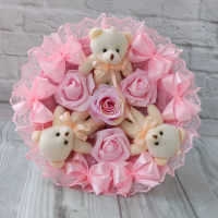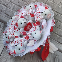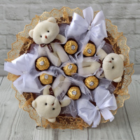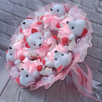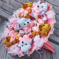 Кожен виріб створюється з увагою до деталей — м’які іграшки приємні на дотик, а цукерки обираються лише перевірених брендів. Ви можете замовити готовий варіант або індивідуальний дизайн — ми підберемо кольорову гаму, кількість іграшок, вид солодощів та оформлення відповідно до ваших побажань.