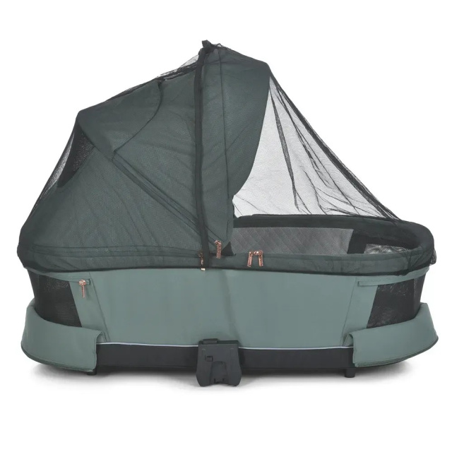Коляска складається з люльки та прогулянкового блоку, які легко змінюються на легкій алюмінієвій рамі.