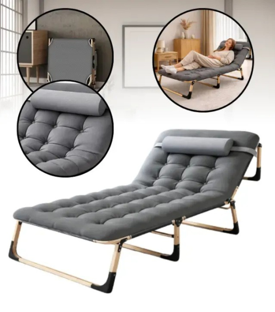 Складний туристичний лежак з матрацом та підголівником 178×56×30 см – регульований садовий шезлонг