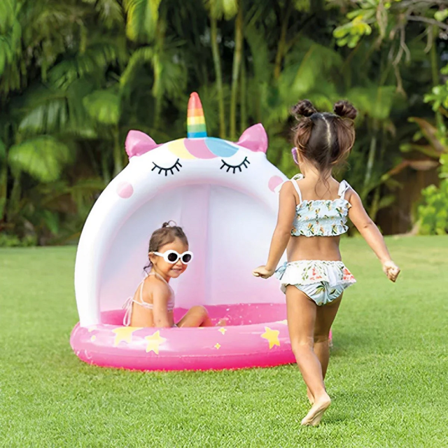 Надувний дитячий басейн Intex 58438 «Которіг» — це яскравий та стильний басейн для малюків із навісом у вигляді кота-єдинорога. Ідеально підходить для комфортних ігор у спекотні літні дні.