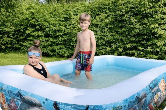 Завдяки великому розміру дорослі також можуть відпочивати разом із дітьми, що робить цей басейн чудовим варіантом для літа.