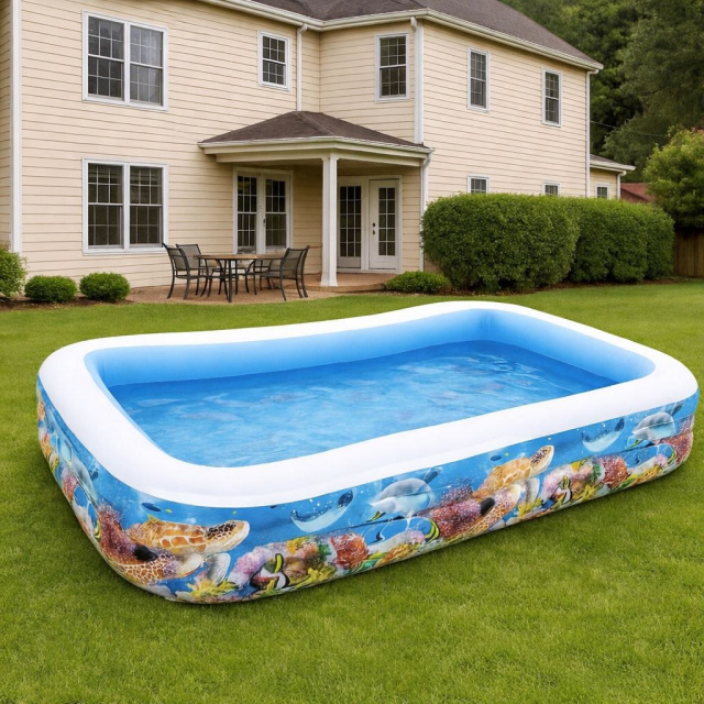 Басейн має реалістичний принт морського рифу, який виглядає ефектно та дуже подобається дітям. Насичені кольори роблять його справжньою прикрасою подвір’я.