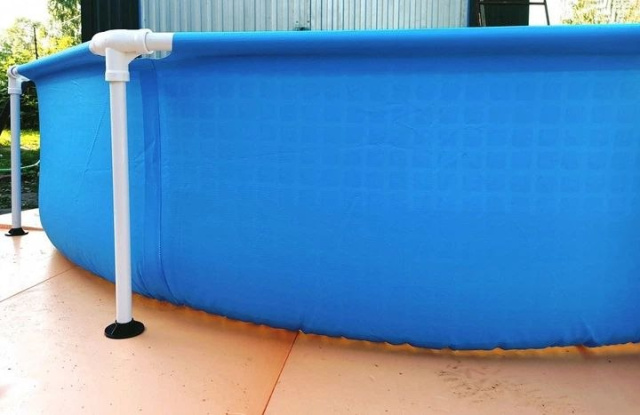 Чаша басейну виконана з тришарового армованого ПВХ (2 шари вінілу + скловолоконна сітка), що гарантує довговічність, міцність і стійкість до проколів.