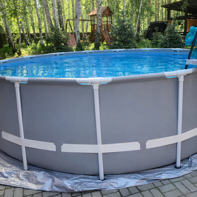 Чаша басейну виконана з тришарового армованого ПВХ за технологією Super-Tough (2 шари ПВХ + армована скловолоконна сітка), що забезпечує підвищену міцність і стійкість до пошкоджень.