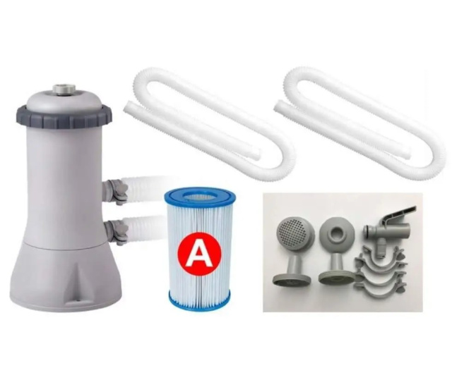 Басейн укомплектований потужним фільтр насосом 3785 літрів за годину, який забезпечує ефективну циркуляцію та очищення води.